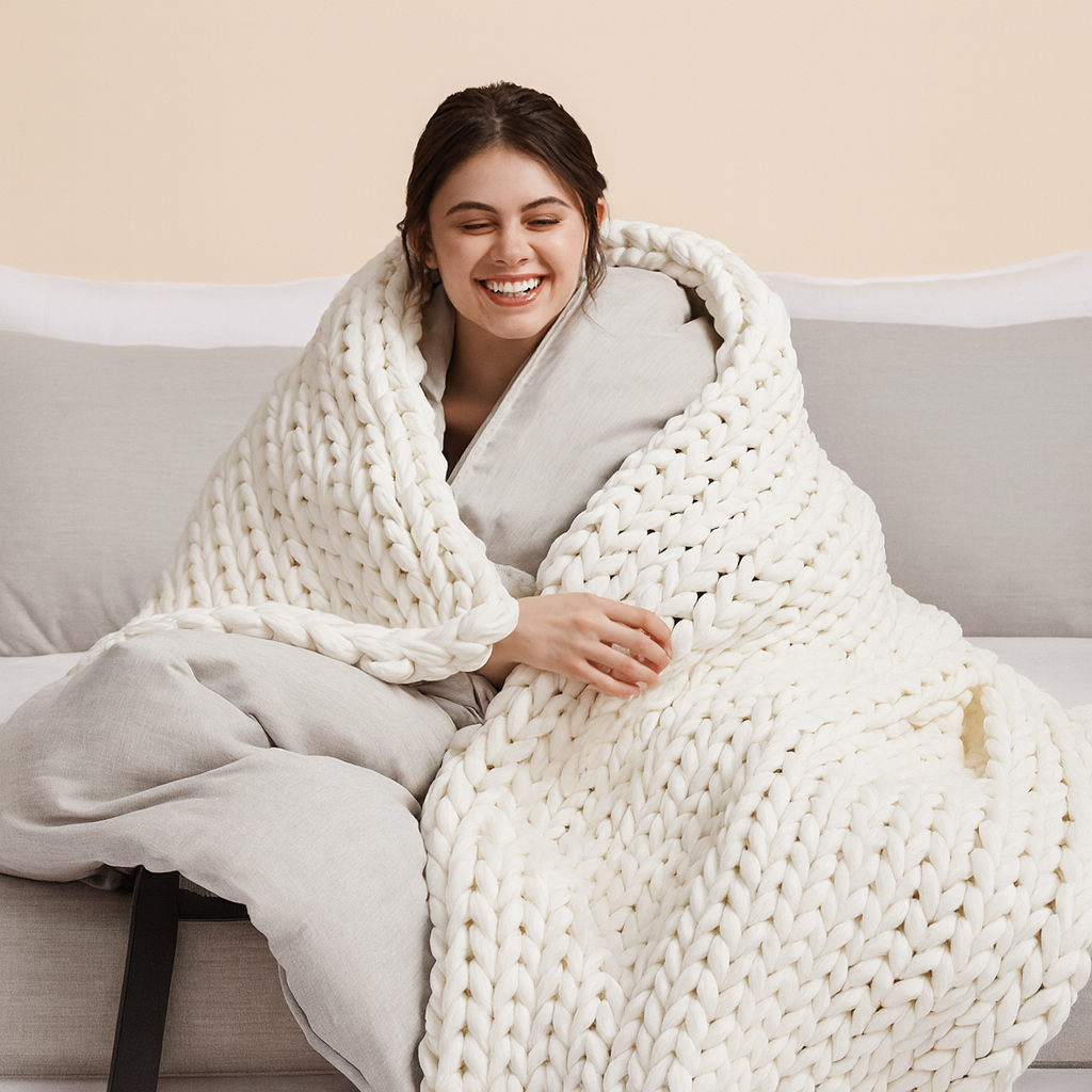 The gentle weight signals your nervous system to relax, lowering cortisol and helping your body slip into deeper sleep.
